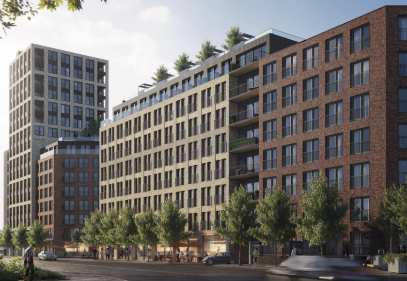 The project consists of 432 one and two-bedroom residential apartments across two blocks of 15 and 8-storeys respectively, providing much-needed homes for local people. The development will also offer indoor and outdoor amenity space, a public square, commercial space on the ground floor and extensive landscaping.